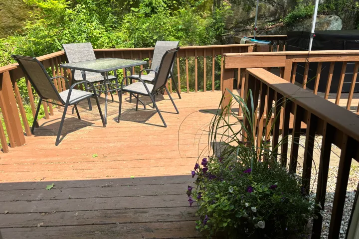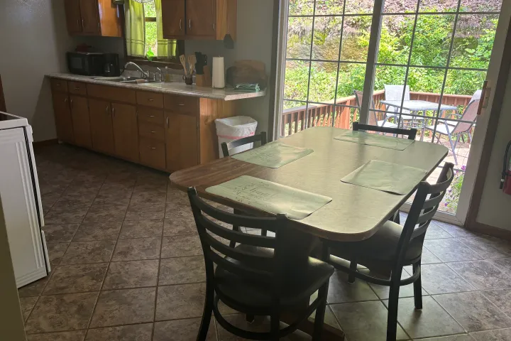 Rivers Edge is the perfect way to enjoy the outdoors while still enjoying the comforts of home. This cabin is equipped with a full bathroom and kitchen. The back deck features a hot tub and a gas grill, making it ideal for relaxation and outdoor cooking. We also provide sheets and towels for your stay.
